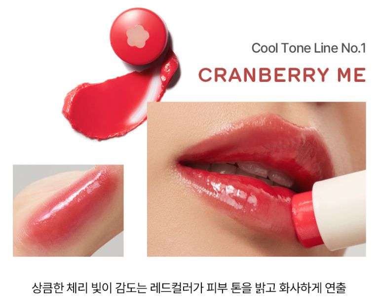 세 가지 색상은 뮤트 라인의 ‘에너제틱’(자연스러운 애프리콧 컬러), 웜톤 라인의 ‘로즈 로맨틱’(톤 다운된 로즈 브릭 컬러), 쿨톤 라인의 ‘크랜베리 미’(상큼한 베리 빛 레드 컬러)로 구성되어 있다. 이 제품은 피부 저자극 및 민감성 테스트를 완료했으며, 20가지 유해 성분을 배제해 민감성 피부도 안심하고 사용할 수 있도록 제작되었다.